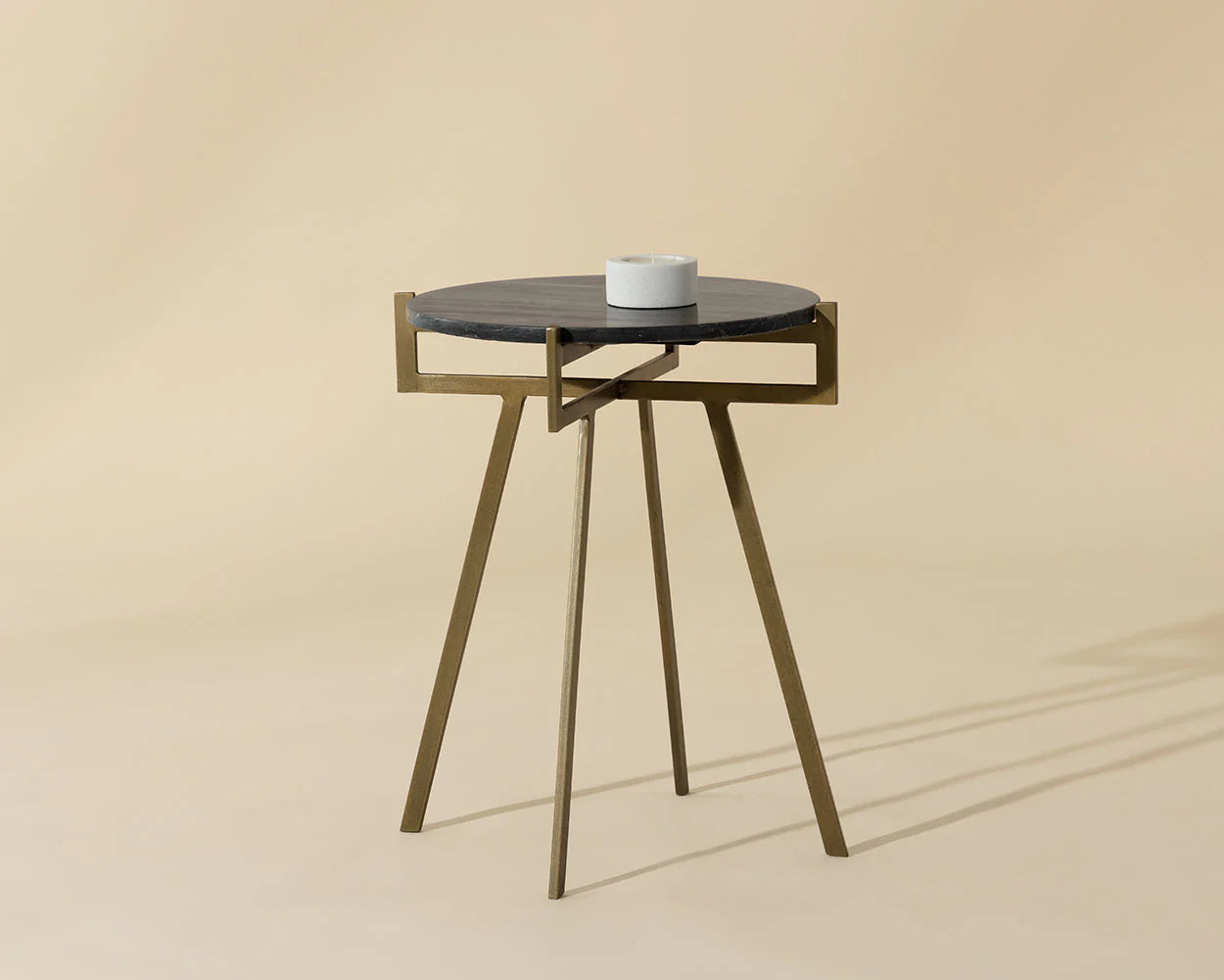 This eye-catching side table exudes a sense of rustic elegance. Features an antique brass iron frame with a round white or black marble top. As marble is a natural material, unique veining, pitting, fissures, micro-cracks and colour variations are all characteristics that add to the uniqueness and beauty of each piece. Made in India. With refined craftsmanship, this design was brought to life by skilled local artisans. By nature, these materials develop unique imperfections such as fissures, markings and colour variations for a truly one-of-a-kind piece.